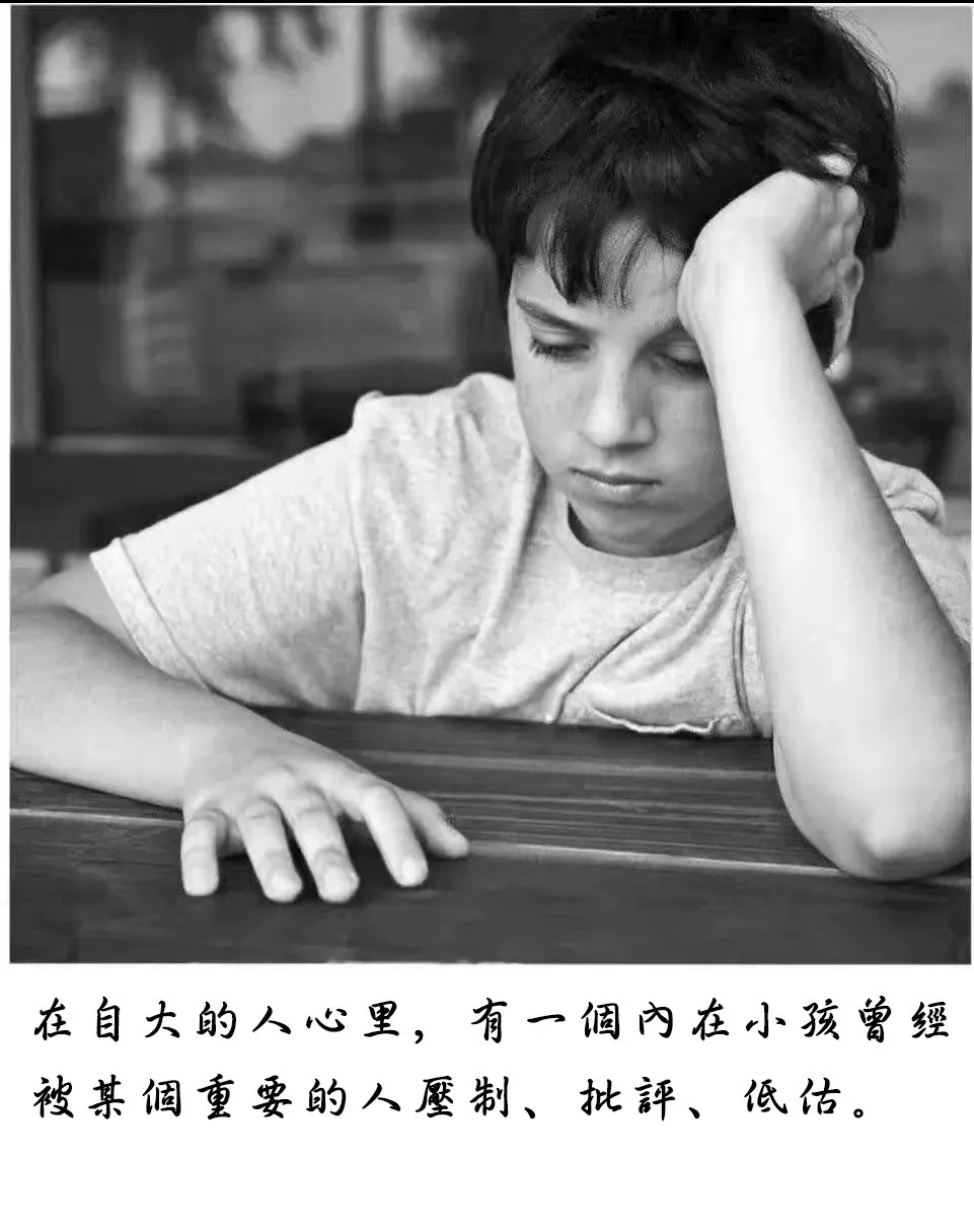 在幼时,曾经未解开的心结,使得我们的内在形成一个被隐藏的敏感脆弱空间。在不断地失望与绝望的过程中,直到成年后,心中的那个小孩轮廓便会像上边那些图中写照的逐渐清晰。一旦我们遭遇挫折,负面的情绪就会被这个内在小孩接收到。